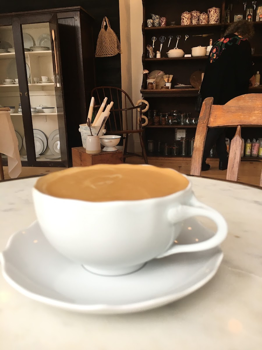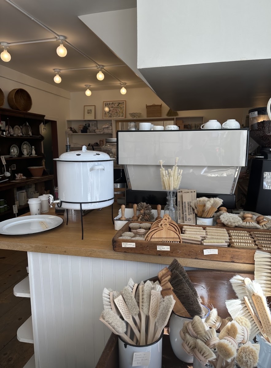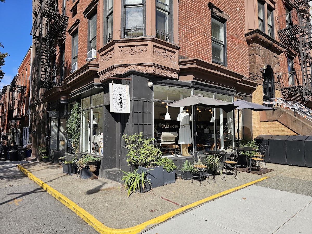 Salter House on Atlantic Avenue in Brooklyn is an unusual blend — part café, part lifestyle shop, part children’s and women’s clothing boutique, and part home goods and toy store. It’s the kind of spot that doesn’t fit neatly into one category but makes sense when experienced as a whole. A few small tables inside offer a pause amid shelves of natural brushes, kitchen linens, and thoughtfully curated apparel for kids and women.